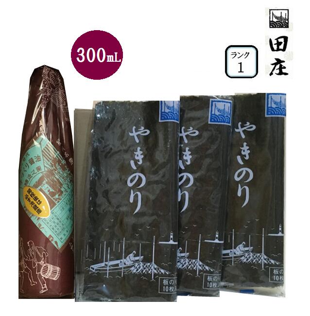 田庄 ランク1(10枚入・3パック)全型30枚 & 角長 湯浅手づくり醤油 300ml 湯浅 醤油 (2種セット) バラ 高級 焼き海苔 田庄海苔 海苔 しょうゆ 寿司 おにぎり用 手巻き寿司 手巻きおにぎり 手土産 贈答品 父の日 母の日 2020 出産内祝い 誕生日プレゼント お礼 お返し