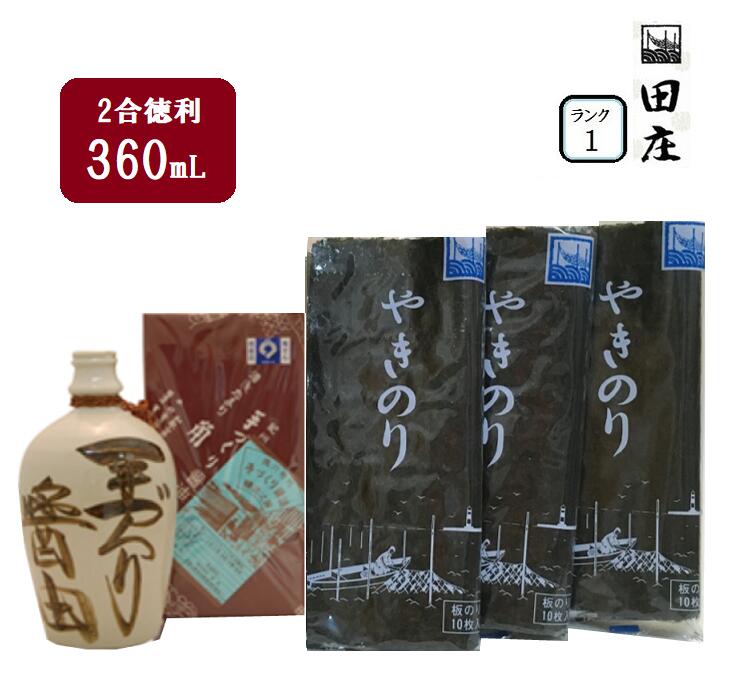 田庄 ランク1(10枚入・3パック)全型30枚 & 角長 手づくり醤油 二合徳利 360ml 湯浅 醤油 (2種セット) バラ 高級 焼き海苔 田庄海苔 海苔 しょうゆ 寿司 おにぎり用 手巻き寿司 手巻きおにぎり 手土産 贈答品 父の日 母の日 2020 出産内祝い 誕生日プレゼント お礼 お返し