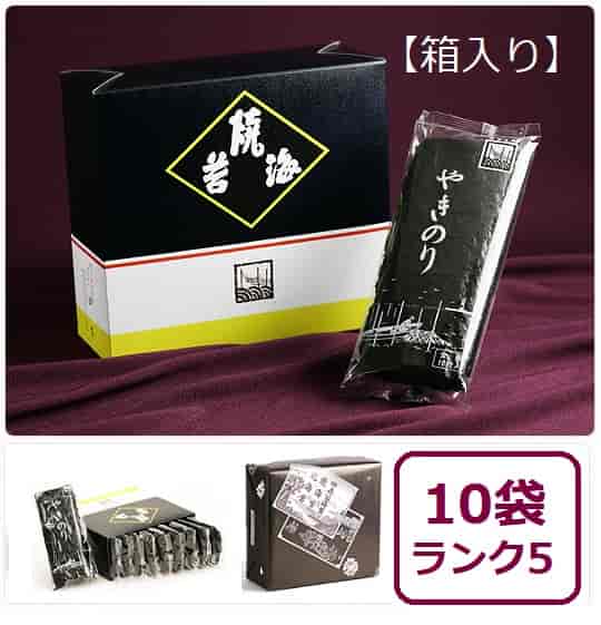 ■高級寿司屋でも使用されているこだわりのやきのり ■パリッとした食感、香り豊かな風味、本物の味、まさに絶品 ■国産海苔を原材料に焼き海苔を作っています 【商品名】 田庄 高級 焼き海苔 (ランク5・箱入り) 板のり10枚×10袋入 焼きのり 海苔 寿司 中元 歳暮 手土産 ギフト 【商品詳細】 内容:板のり10枚×10袋入(箱入り) 箱サイズ(mm):縦 230 × 横 255 × 奥行 103 専門店でしか取り扱いがないので希少価値の高い逸品です。