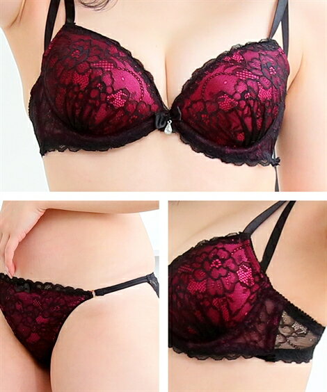 原産国 中国製 メーカー品番 ZZY4319D4072 コメント ブラックレースとサテンの組み合わせがセクシーなブラジャーショーツセット。
