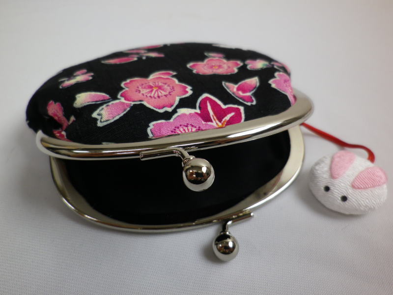 財布 がま口 サイフ 小銭入れ 和柄 大ぶり 桜楓うさぎ黒 日本製 女性用 レディース 子供用 キッズ